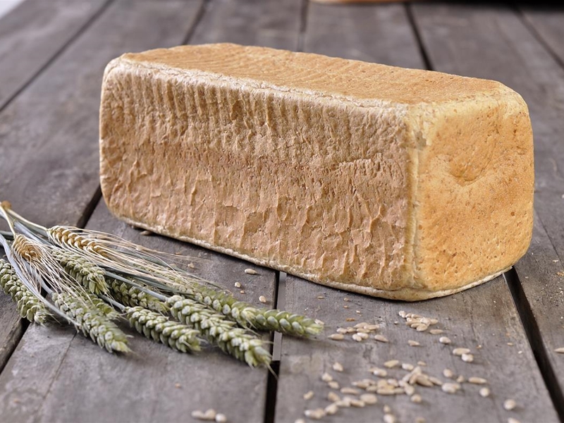Een mengsel van tarwe-bloem en volkorenmeel, water, gist en zout.