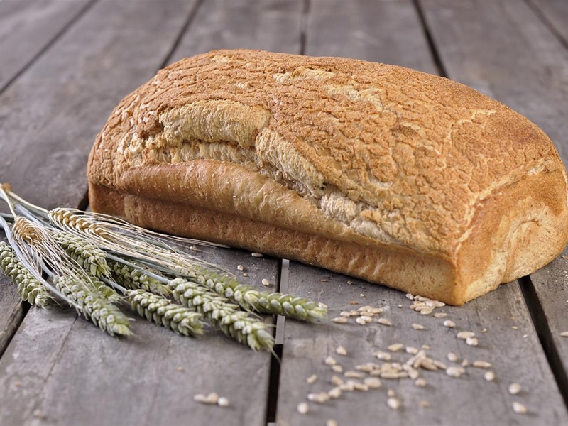 Een mengsel van tarwe-bloem en volkorenmeel, water, gist en zout.
