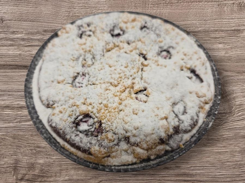Een zacht cakebeslag gemaakt naar een decenia-oud familierecept rijkelijk gevuld met kersen en chocolade