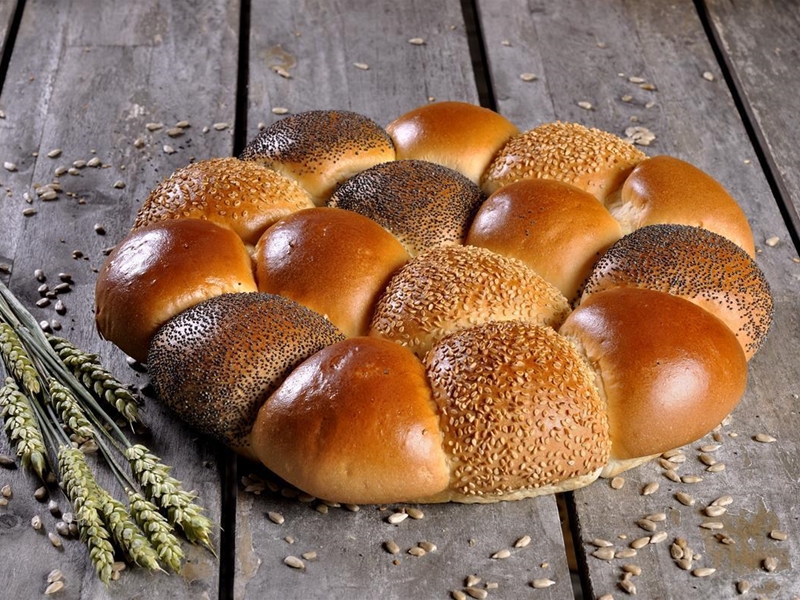 Onze witte broodjes in een kringetje. makkerijk om te breken.